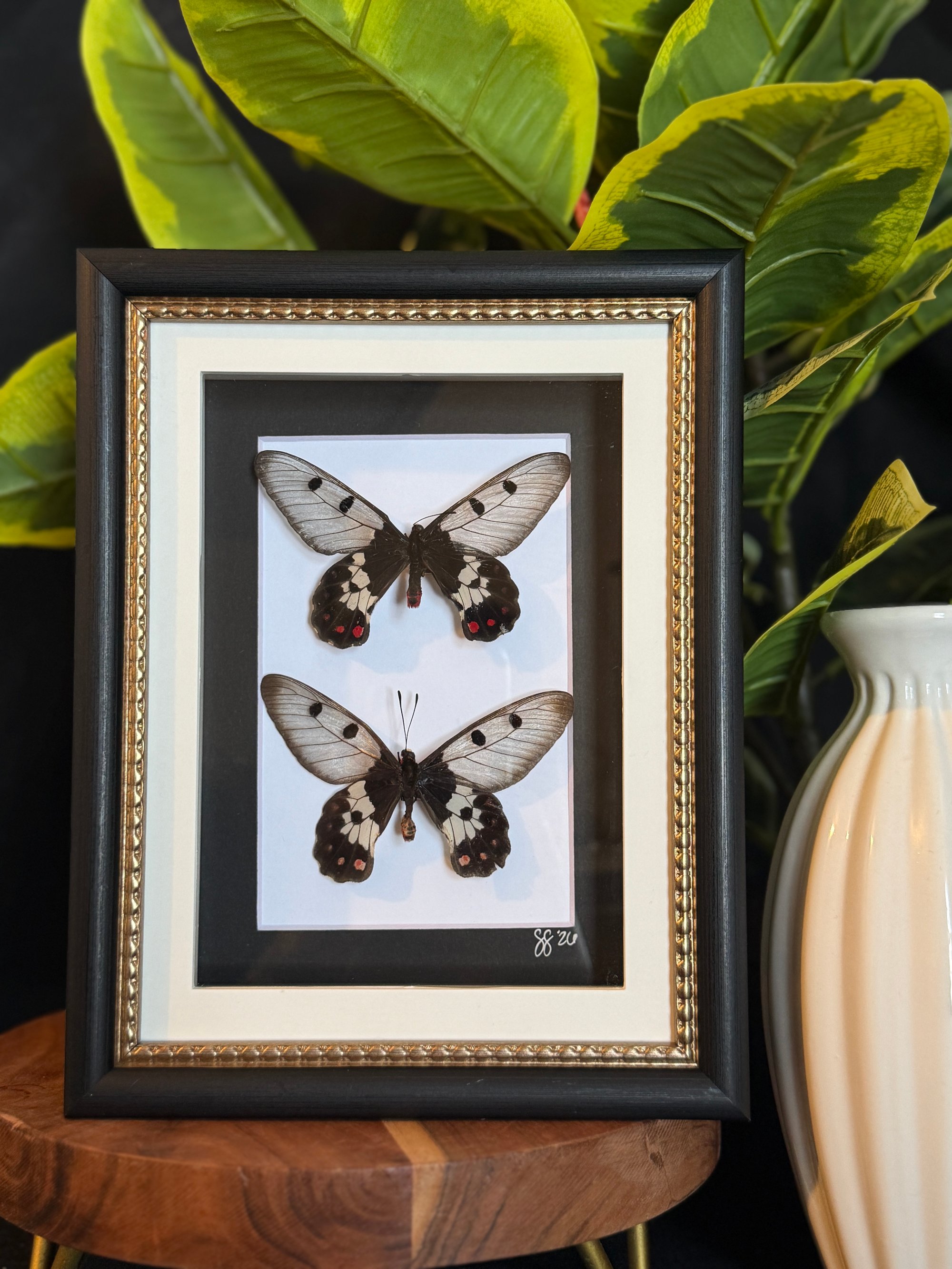 5X7 black and gold frame featuring two Big Greasy butterflies