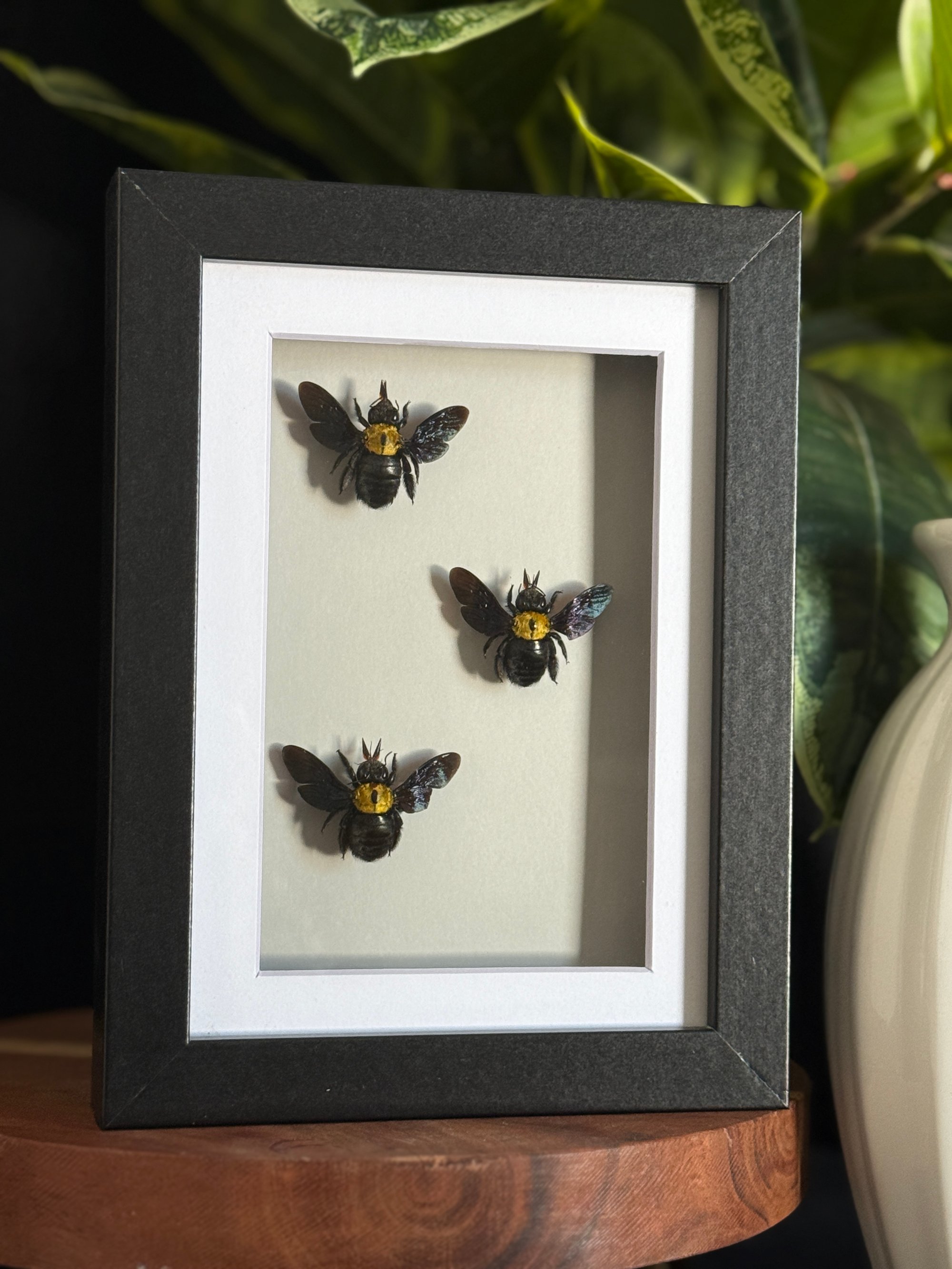5X7 black frame featuring three carpenter bees