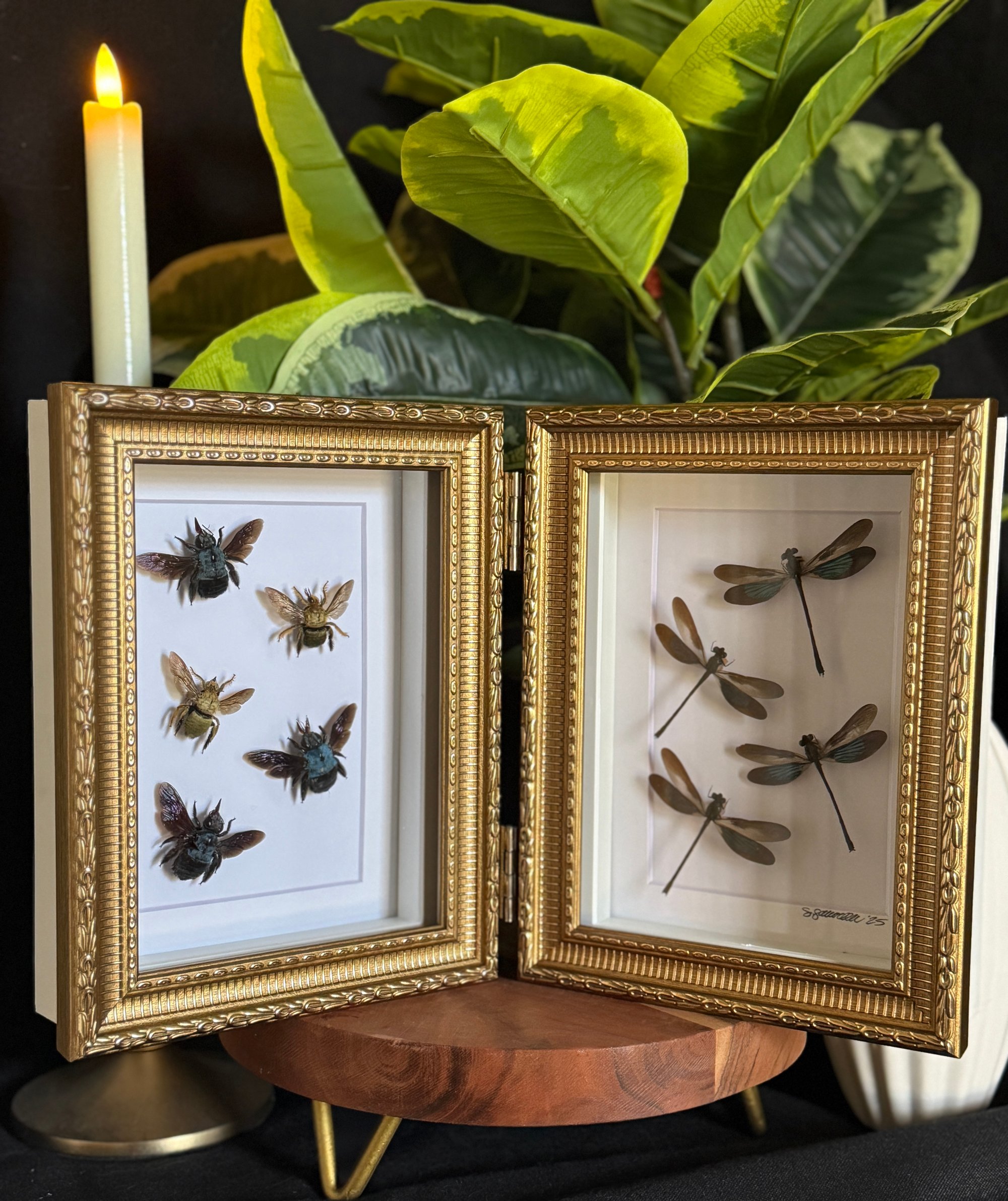 This is one whole folding frame! Each side are 5x7 featuring damselflies and carpenter bees