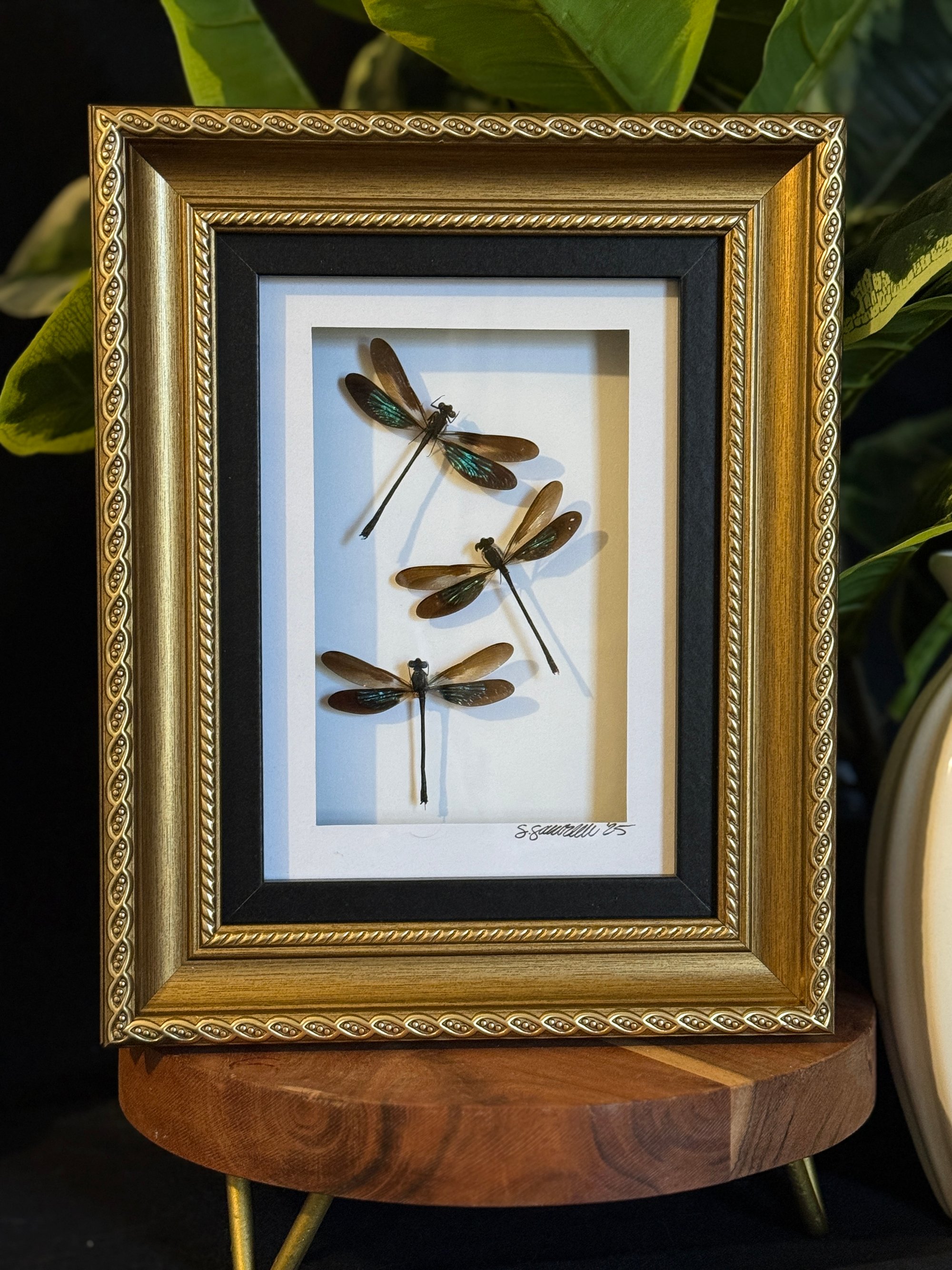 ROUGHLY 5X7 GOLD ORNATE FRAME FEATURING THREE DAMSELFLIES