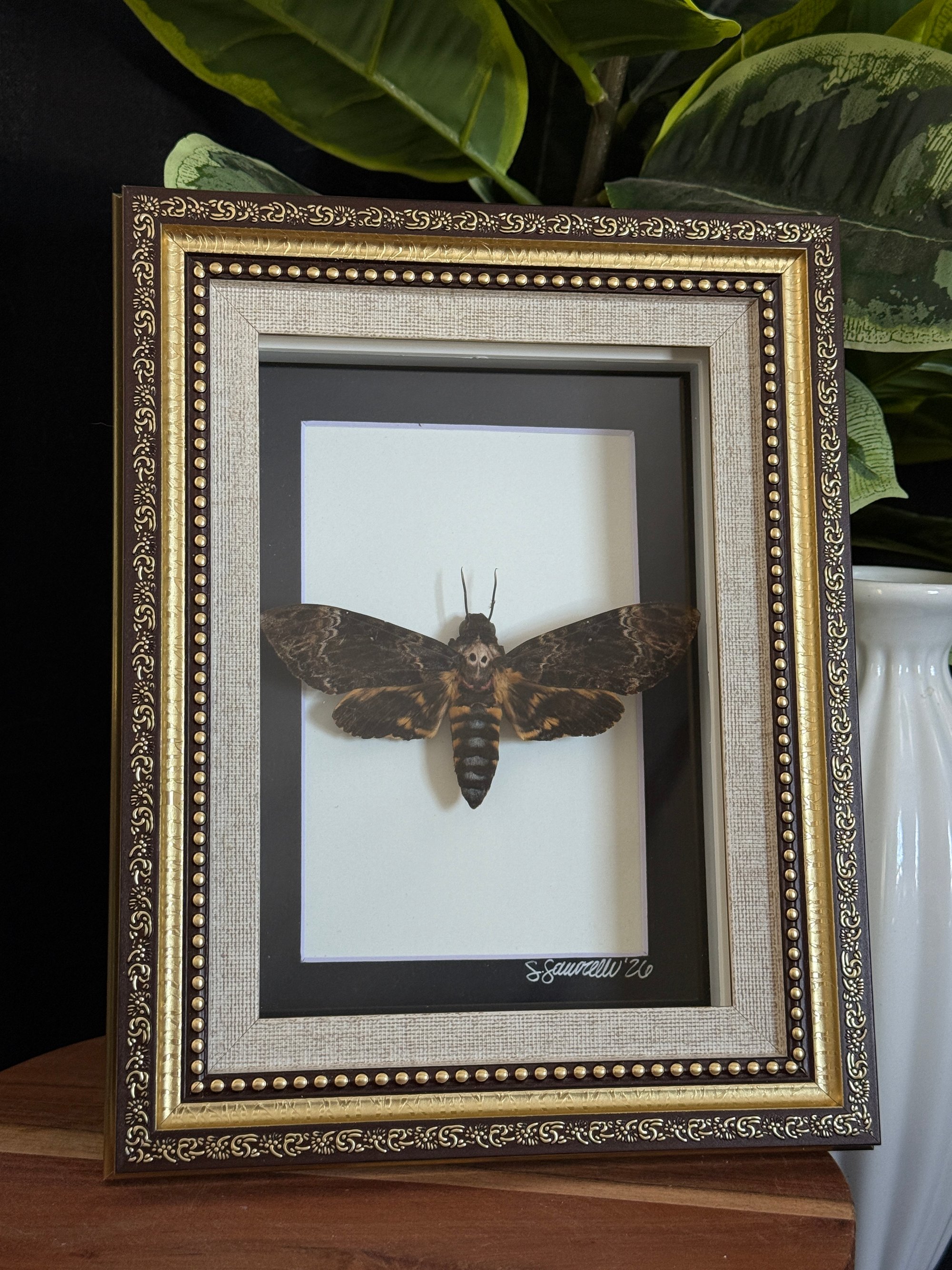 **EVERY DEATH HEAD FRAME WILL HAVE A PEST STRIP HIDDEN IN THE BOX. THESE MOTHS ARE PRONE TO TINY BEETLES FORMING INSIDE THEIR ABDOMENS. THESE STRIPS WILL PREVENT THAT FROM HAPPENING**
