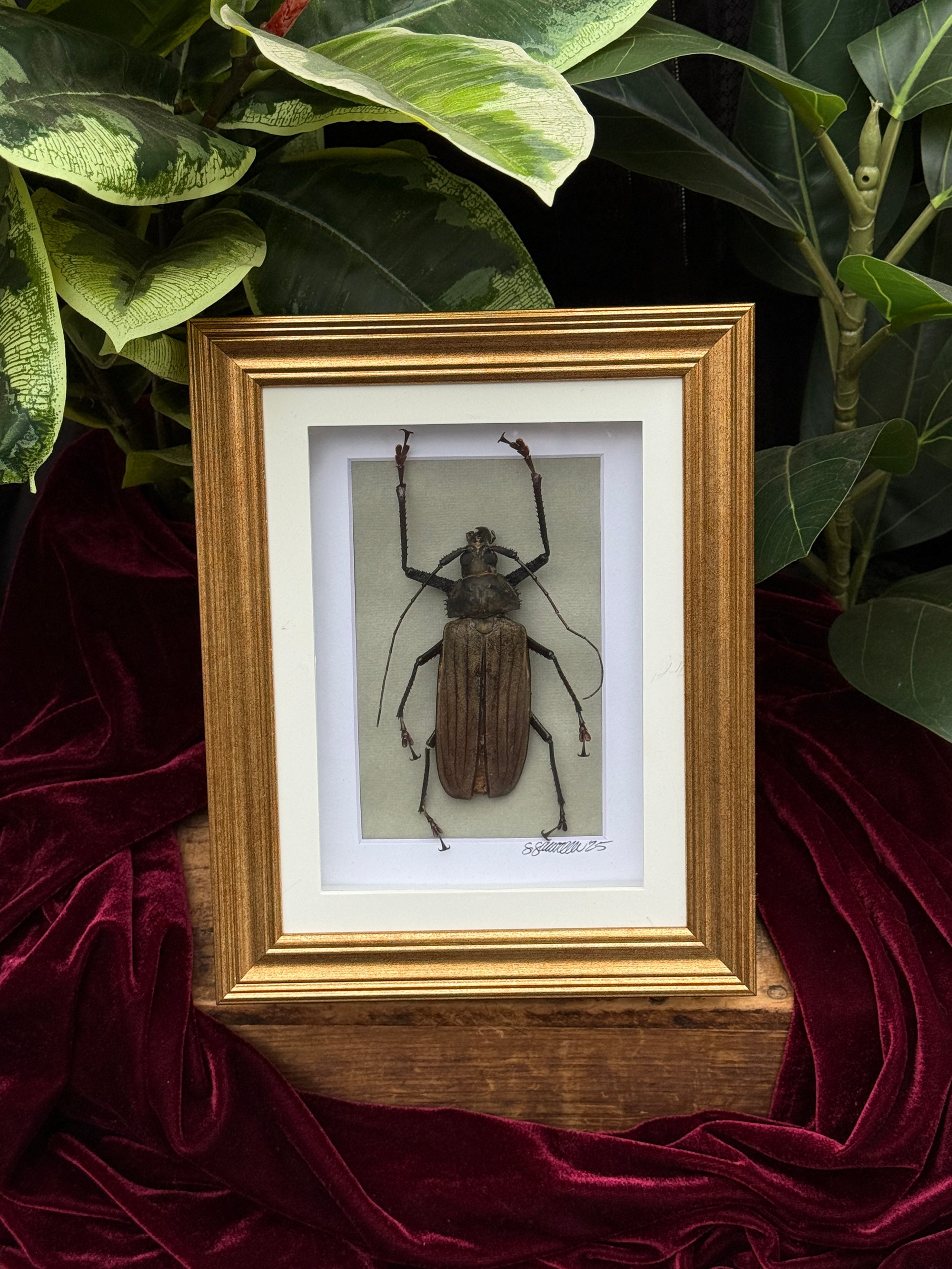 5X7 GOLD FRAME FEATURING A GIANT INDONESIAN LONGHORN BEETLE