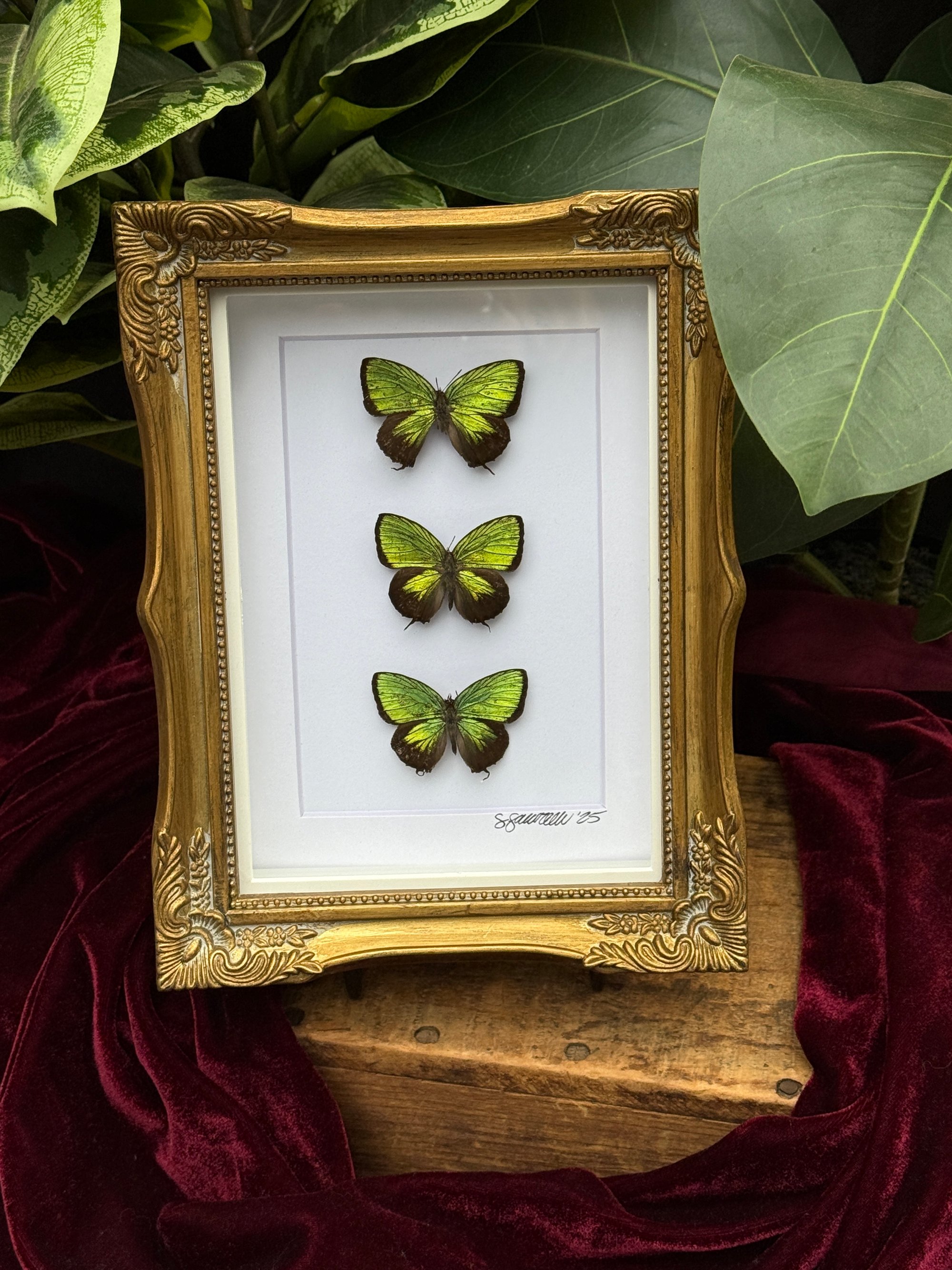 5X7 GOLD ORNATE FRAME FEATURING THREE METALLIC GREEN BUTTERFLIES