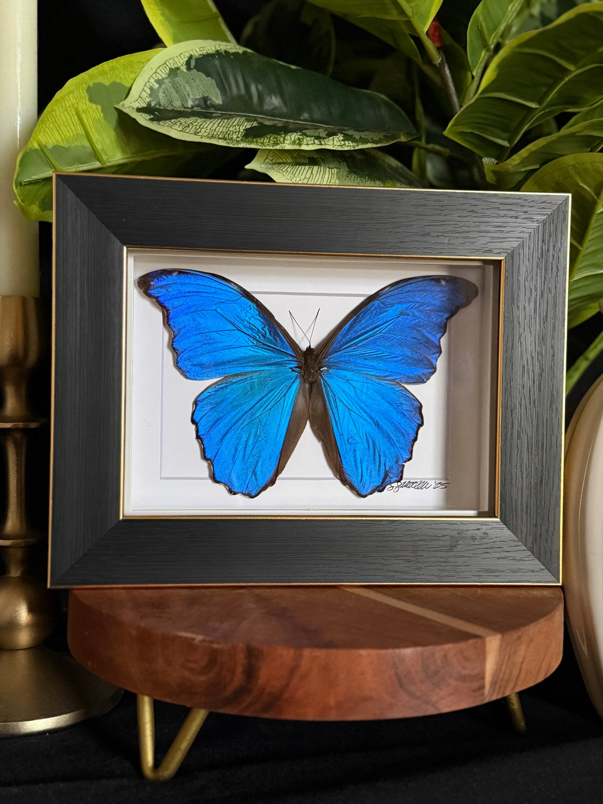 5x7 sleek black frame featuring a stunning blue morpho butterfly