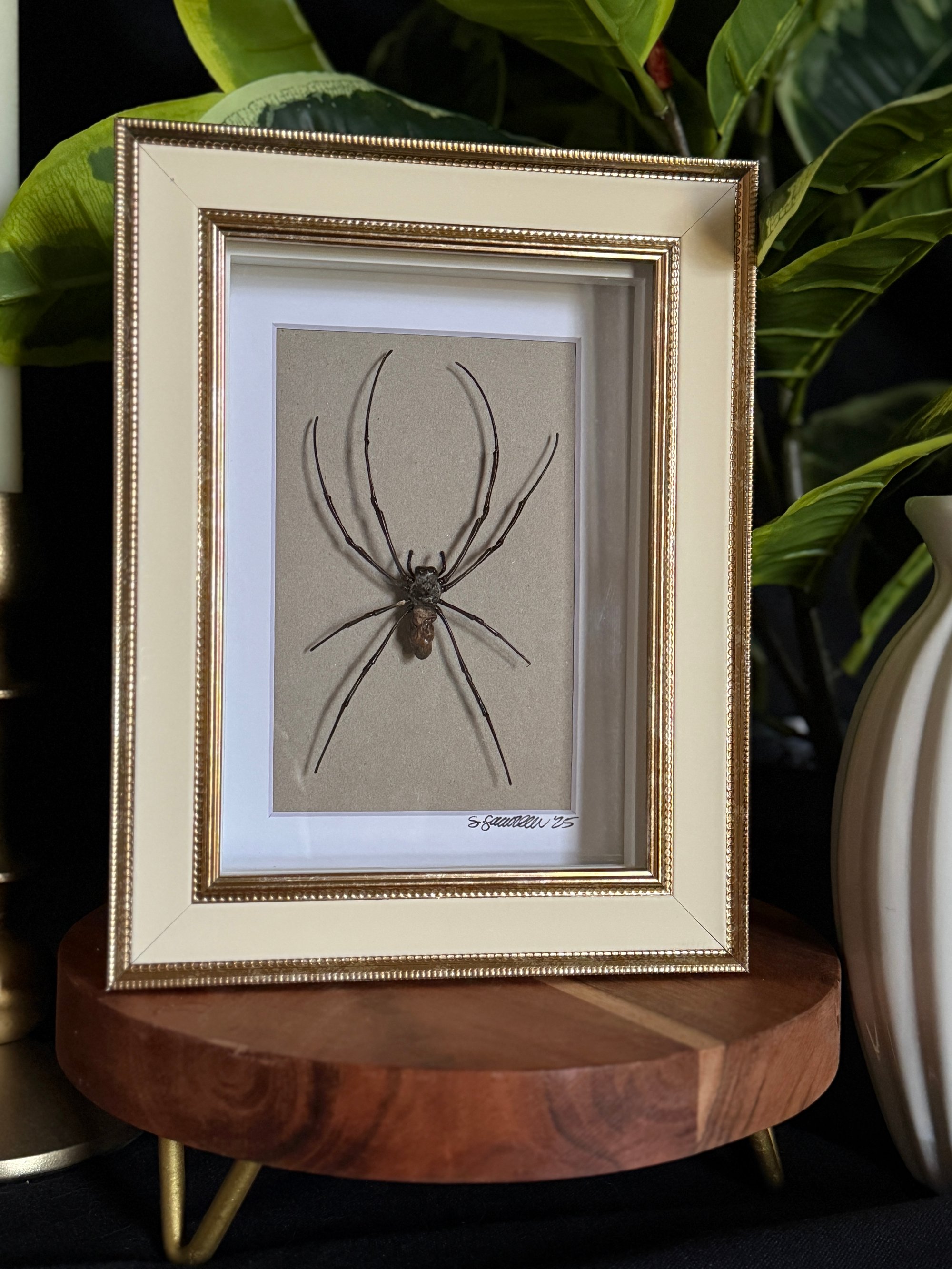 5X7 creamy white/gold frame featuring a stunning golden orb weaver spider