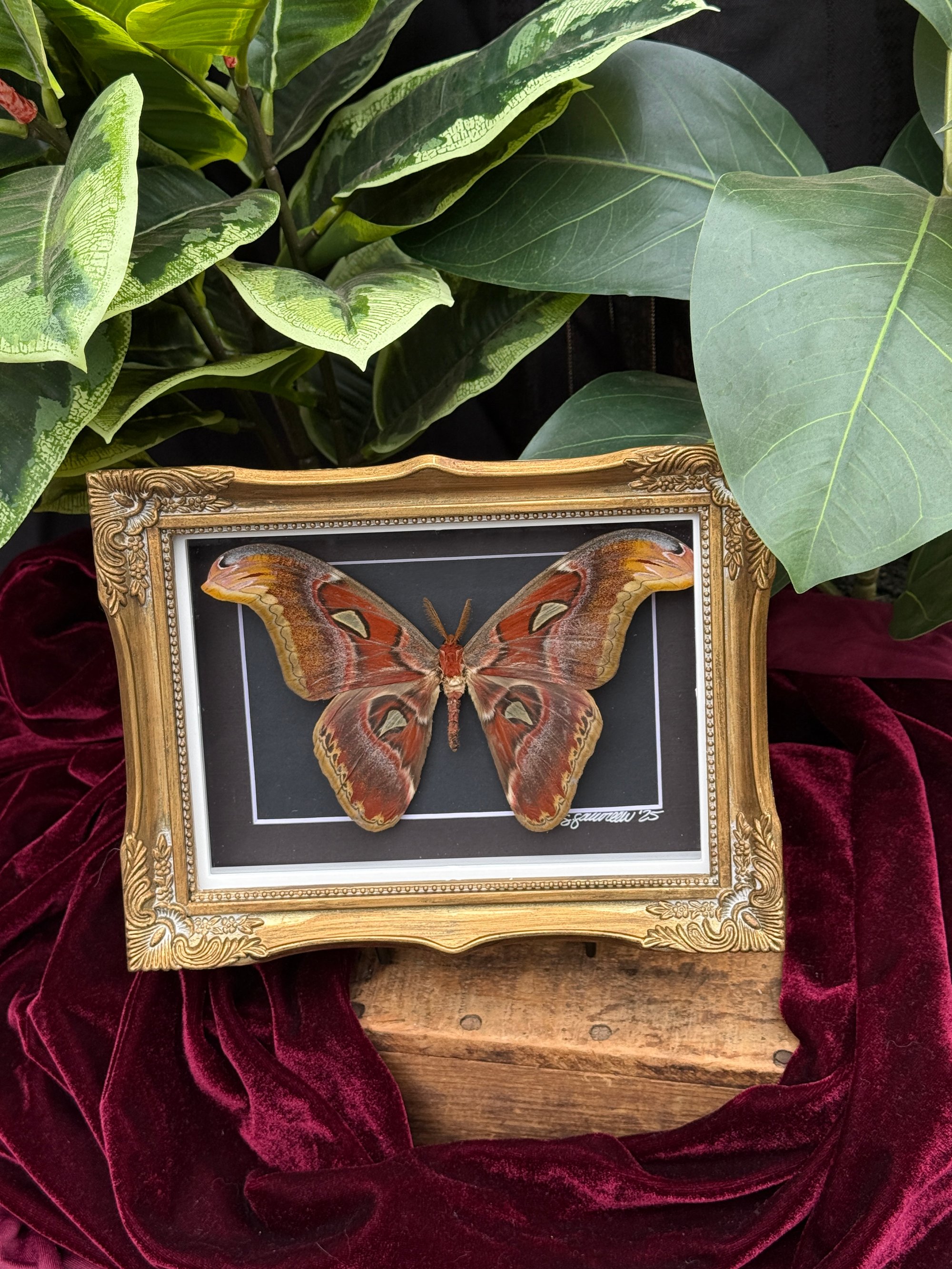 5X7 GOLD ORNATE FRAME FEATURING A STUNNING ATLAS MOTH