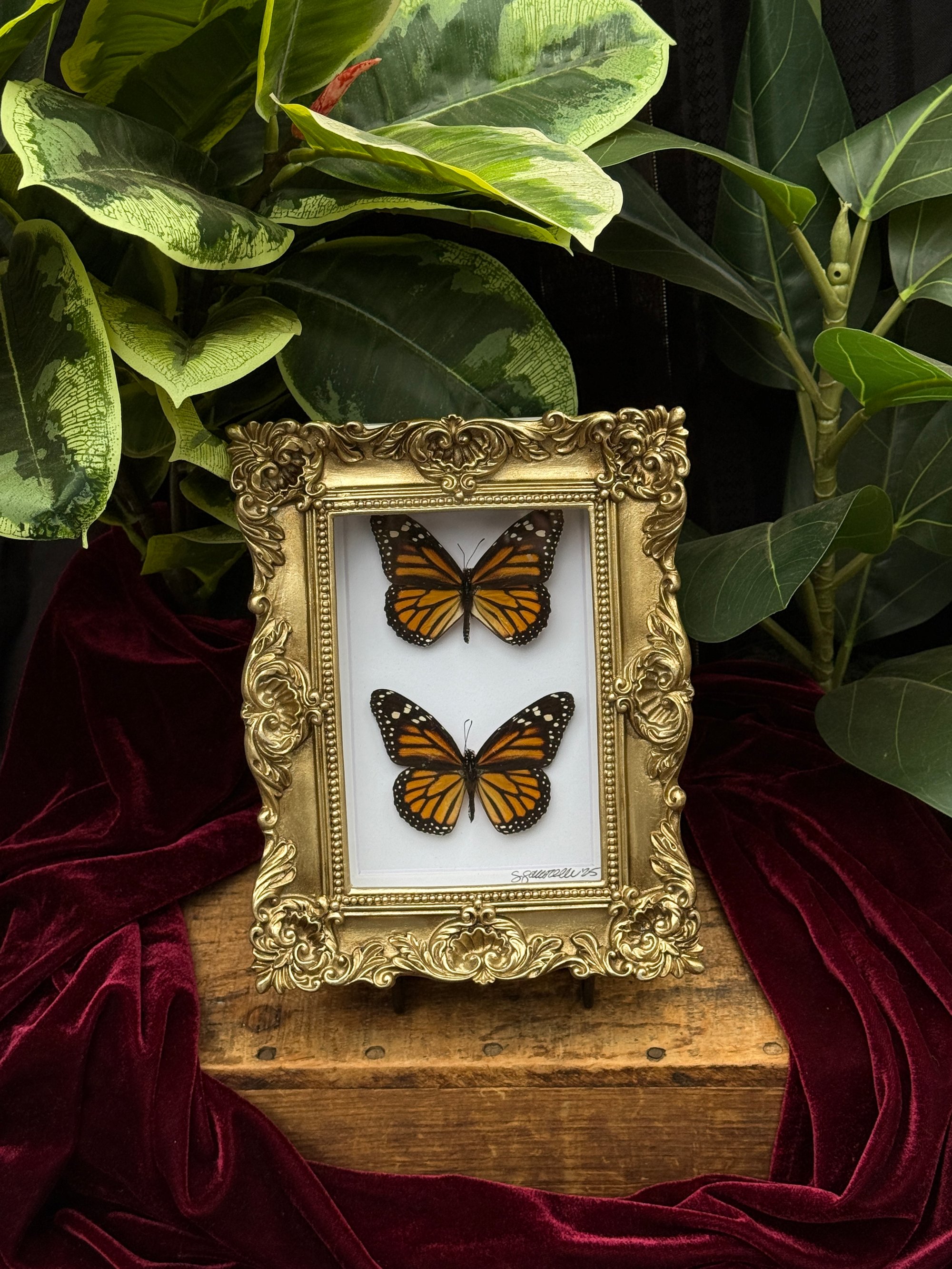 5X7 GOLD ORNATE FRAME FEATURING TWO FEMALE MONARCH BUTTERFLIES