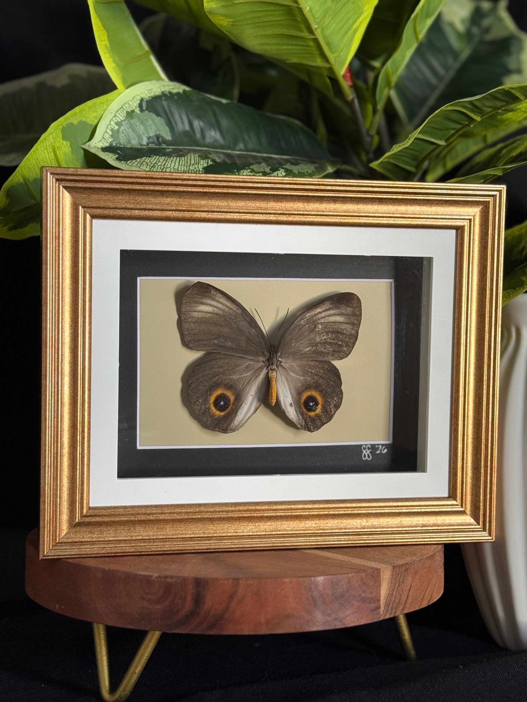 Roughly 7x9 gold frame featuring a stunning owl butterfly
