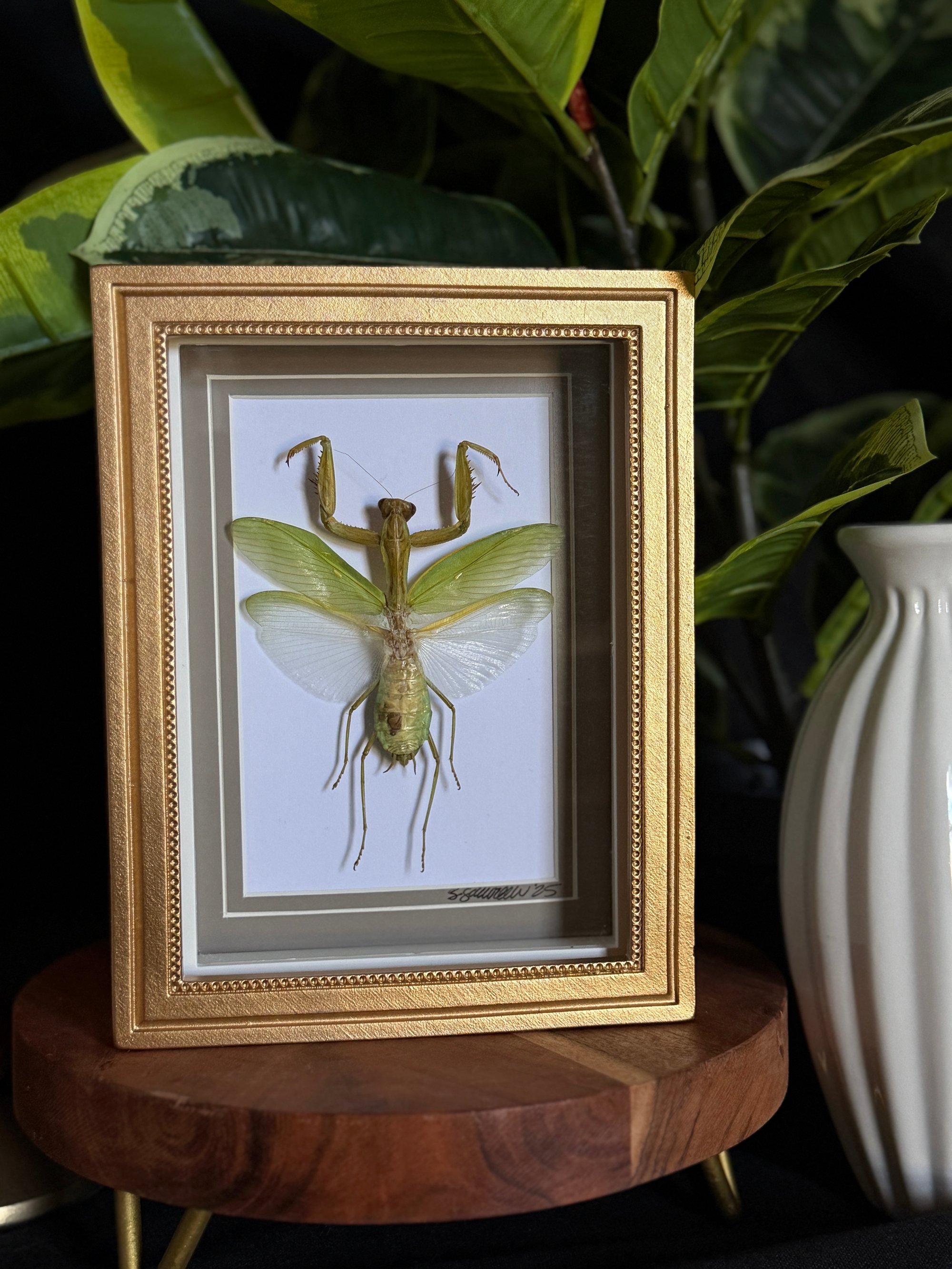 5X7 gold frame featuring a stunning praying mantis