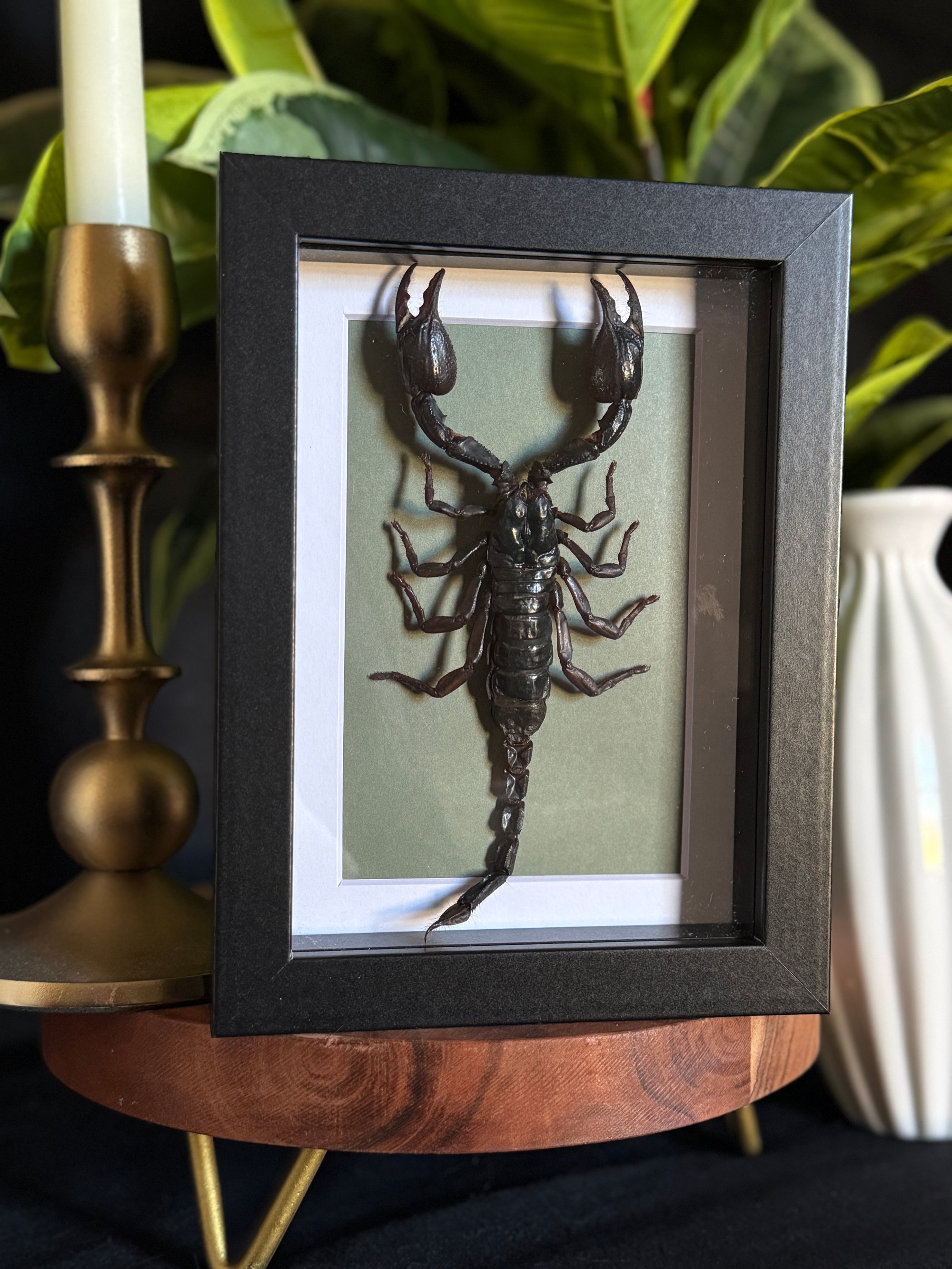 5X7 black frame featuring a giant forest scorpion
