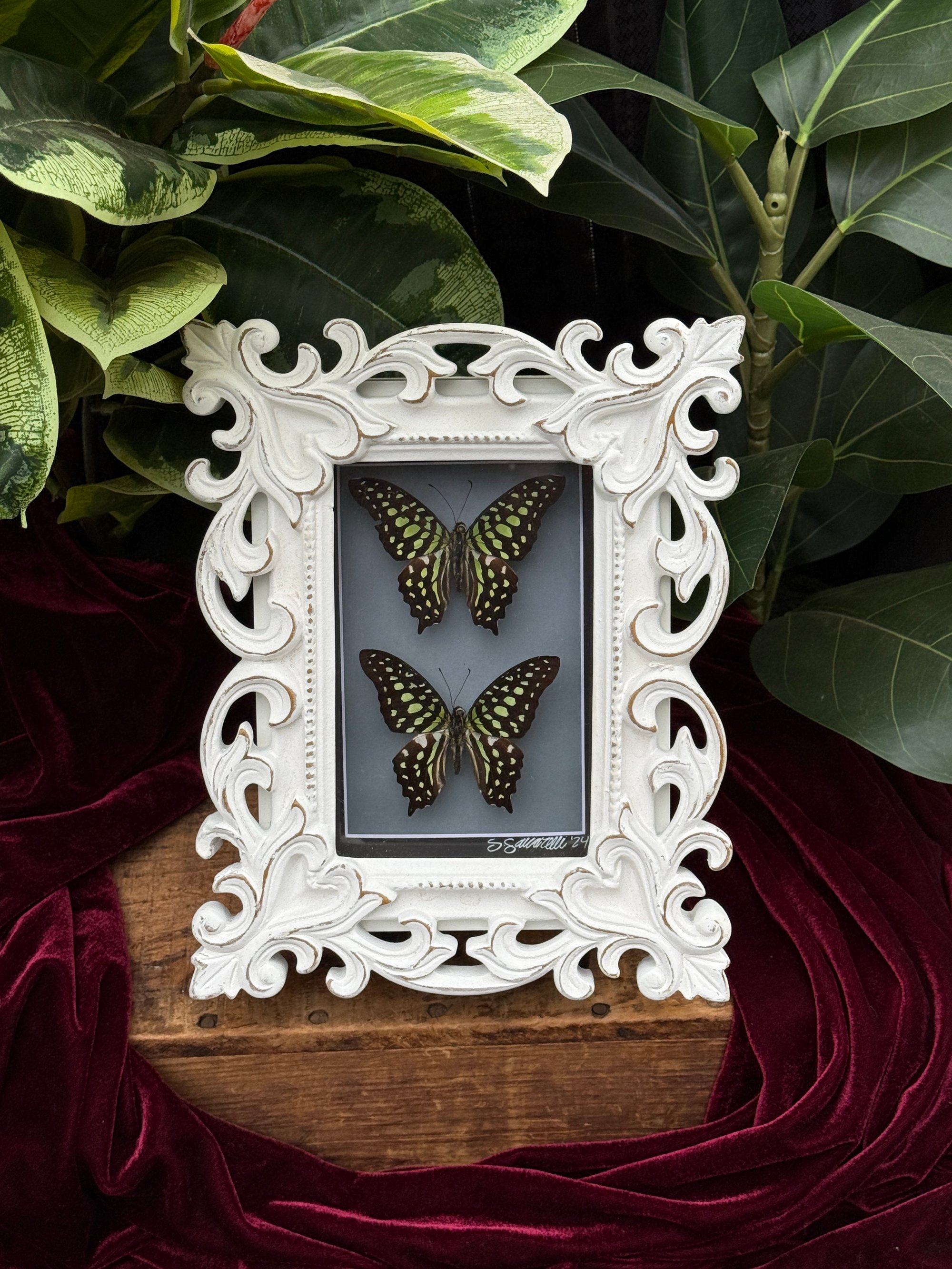 5X7 WHITE ORNATE FRAME FEATURING TWO TAILED JAY BUTTERFLIES
