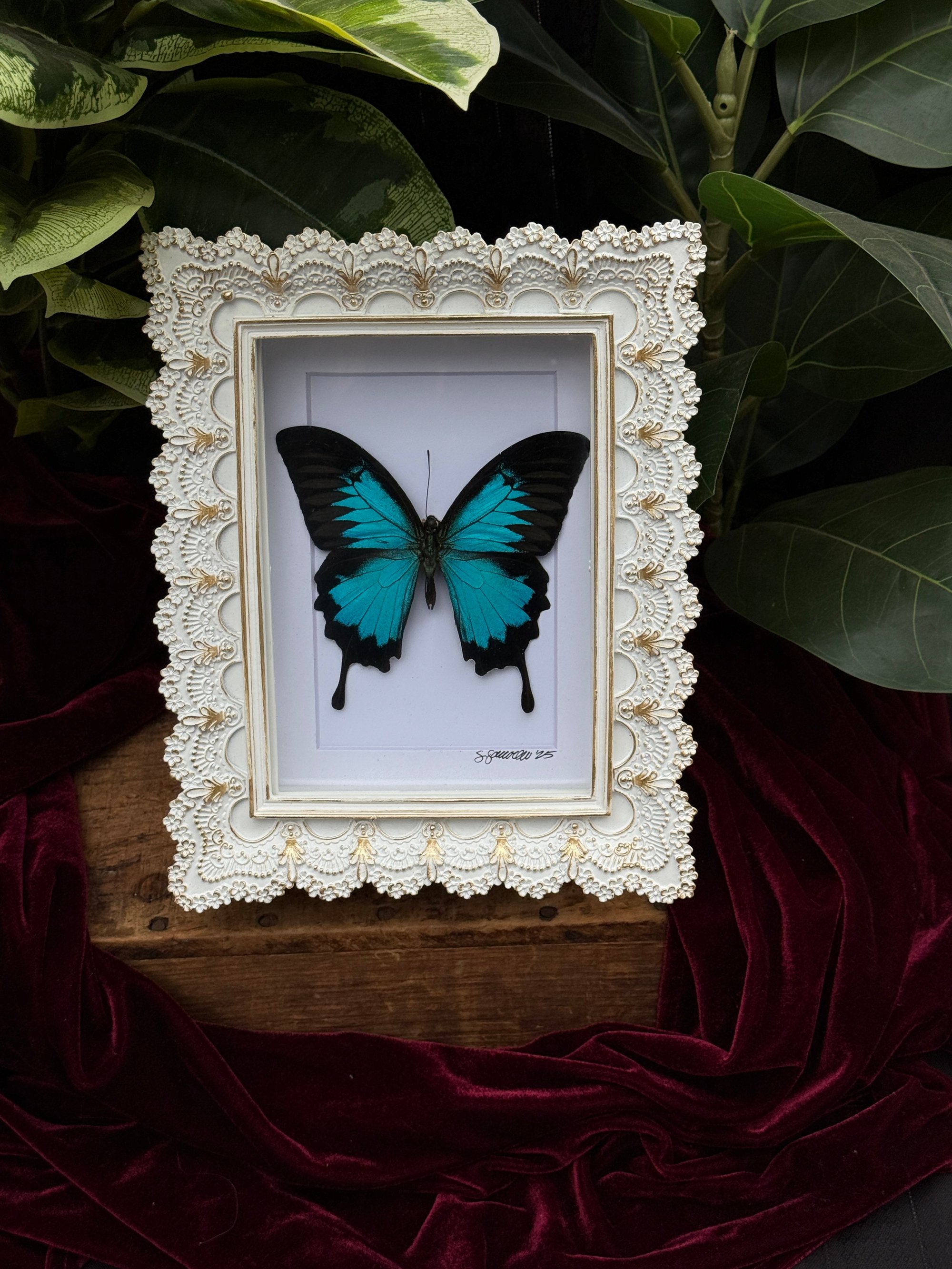 WHITE / GOLD FRAMED BLUE EMPEROR SWALLOWTAIL