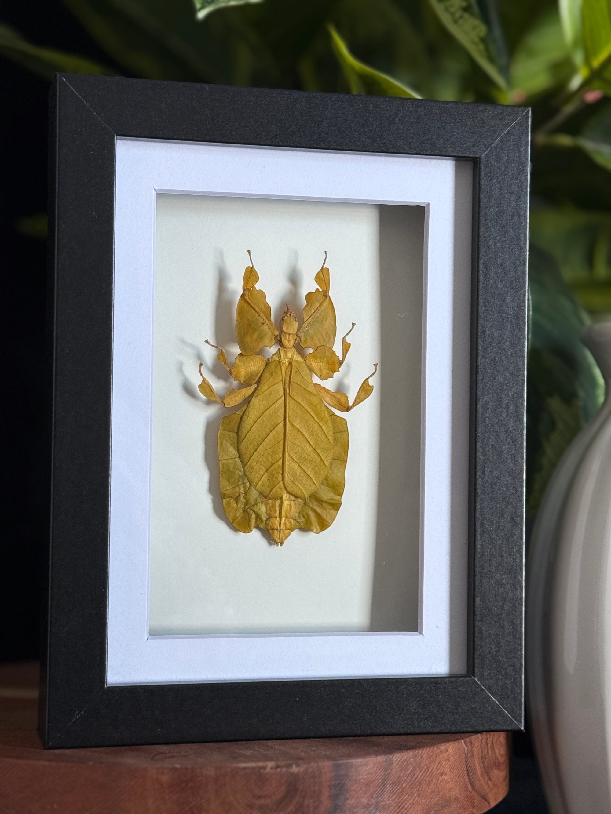 5X7 black frame featuring a stunning yellow leaf bug